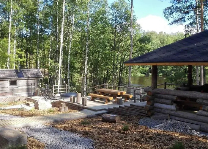 Comfy Cabin Retreat For 8 With Hot Tub & Sauna是一间海滨的公寓,距离Lullinvuoren luola有10分钟的车程。 公寓拥有1间卧室,1间浴室以及露台,来满足旅客的需求。